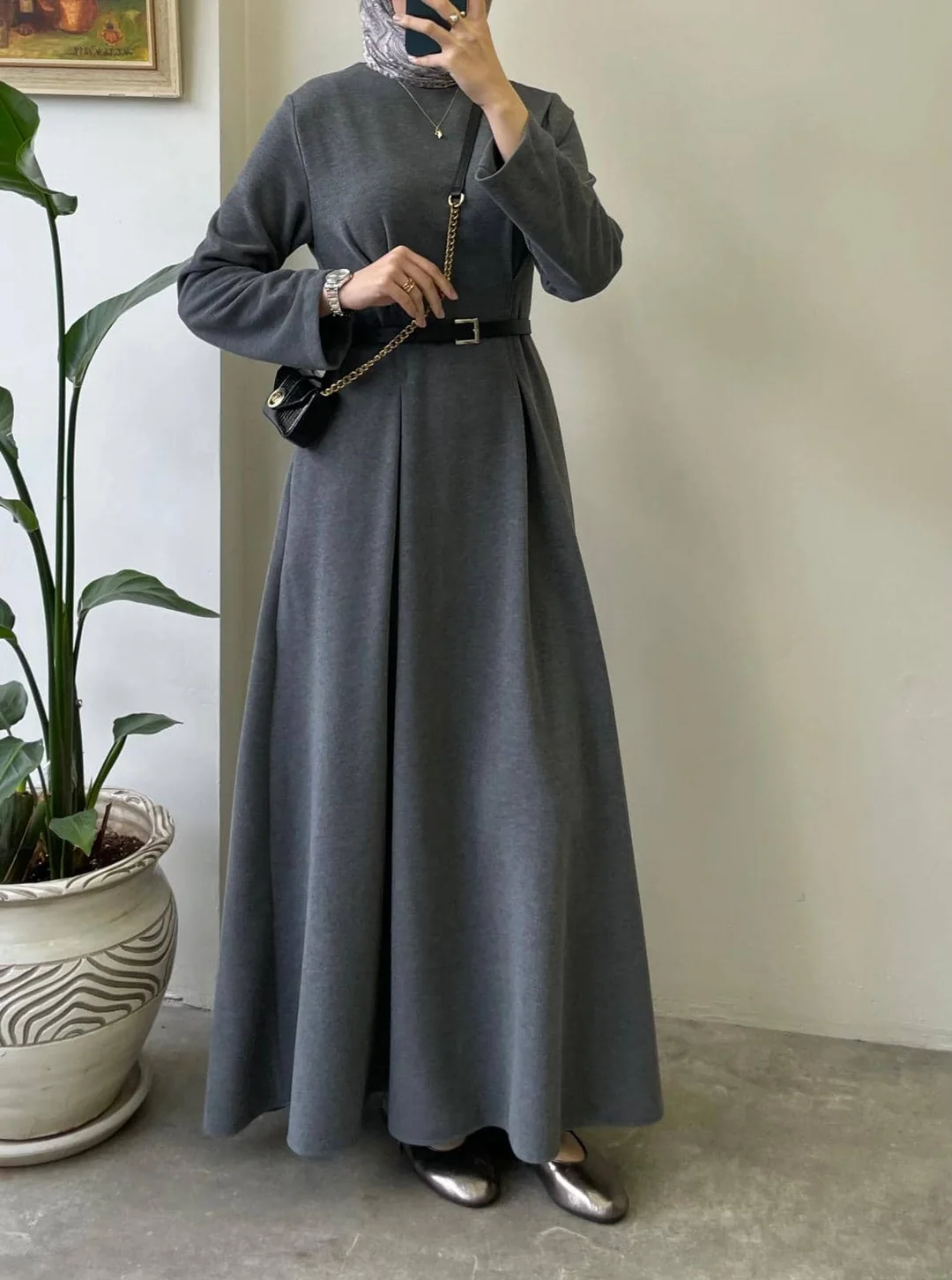 Nowan Store olarak 2026 kış sezonunda tesettür elbise koleksiyonumuzda sade şıklığı ön planda tuttuk. Uzun kesimli, dökümlü kalıplara sahip kışlık tesettür elbise modelleri, yüksek yaka detayları, düğme aksesuarları ve kuşaklarla tamamlanıyor.